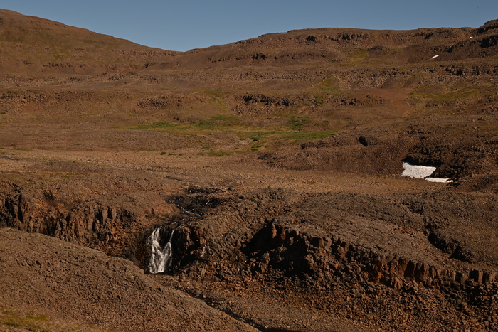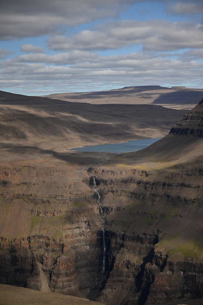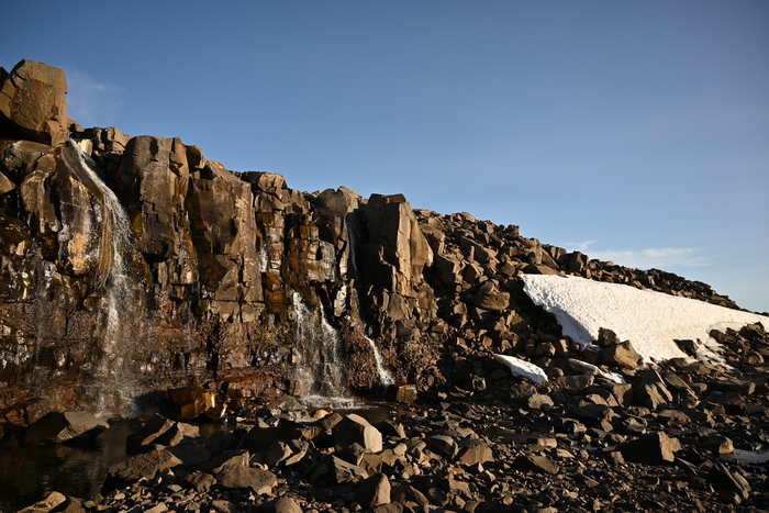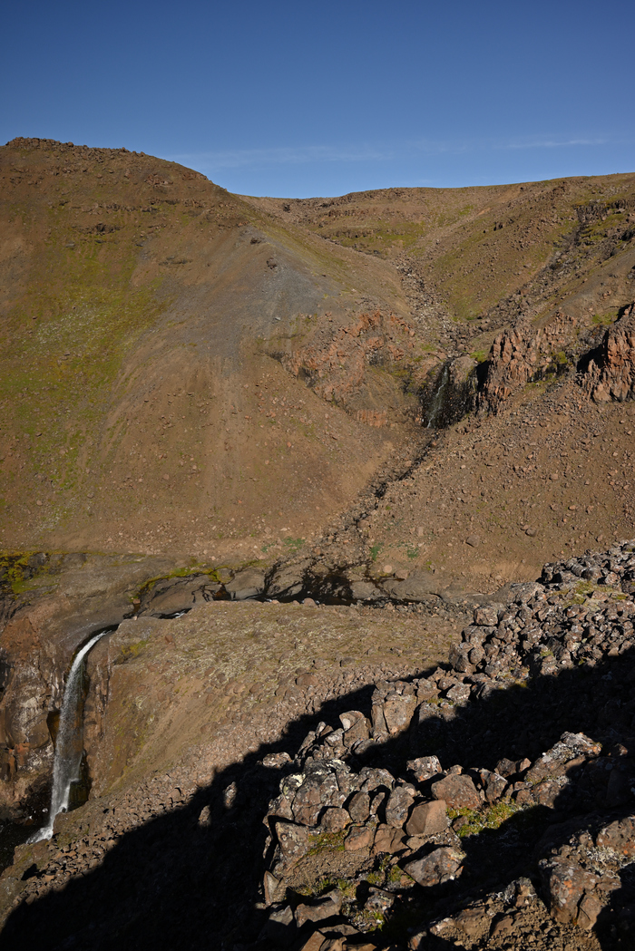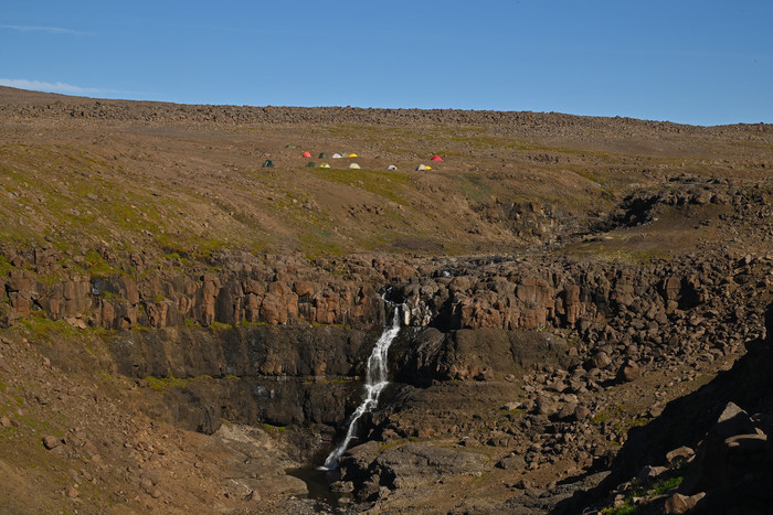 Наверху плато каменные пустоши, зелени почти нет, сплошь курум. На прогулку мимо прозрачных озёр до водопада и обратно, ушло часа 3. Пошли не все, и группа за это время наловила ещё рыбы, так что к сухпайку на обеде добавилась уха.