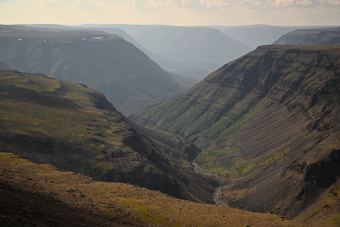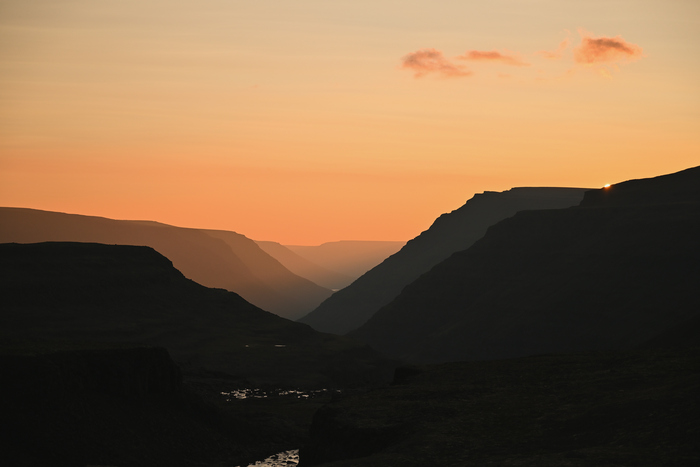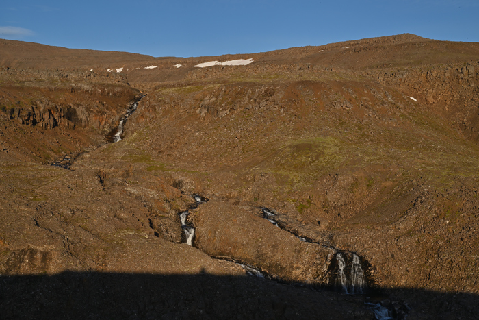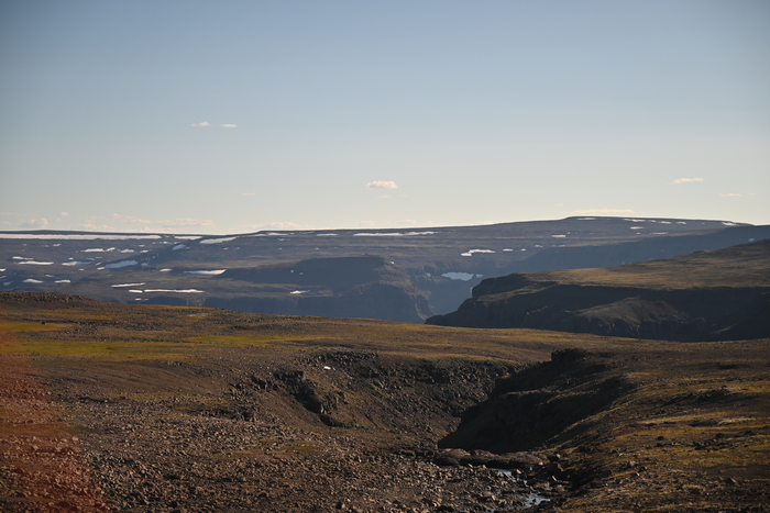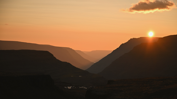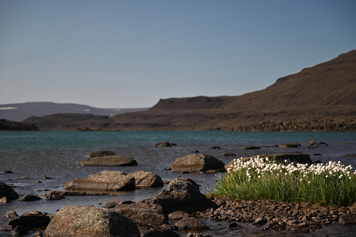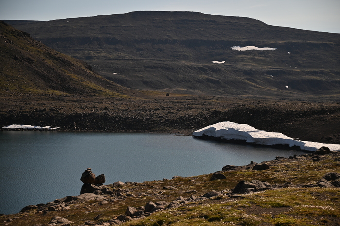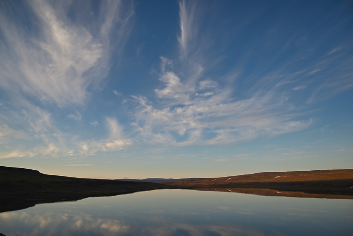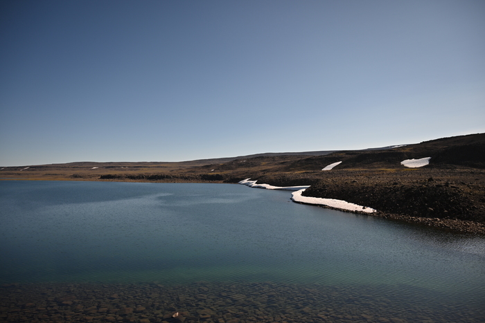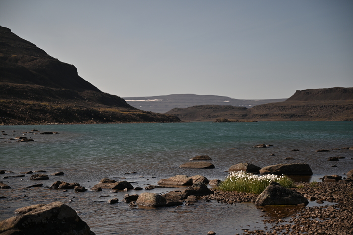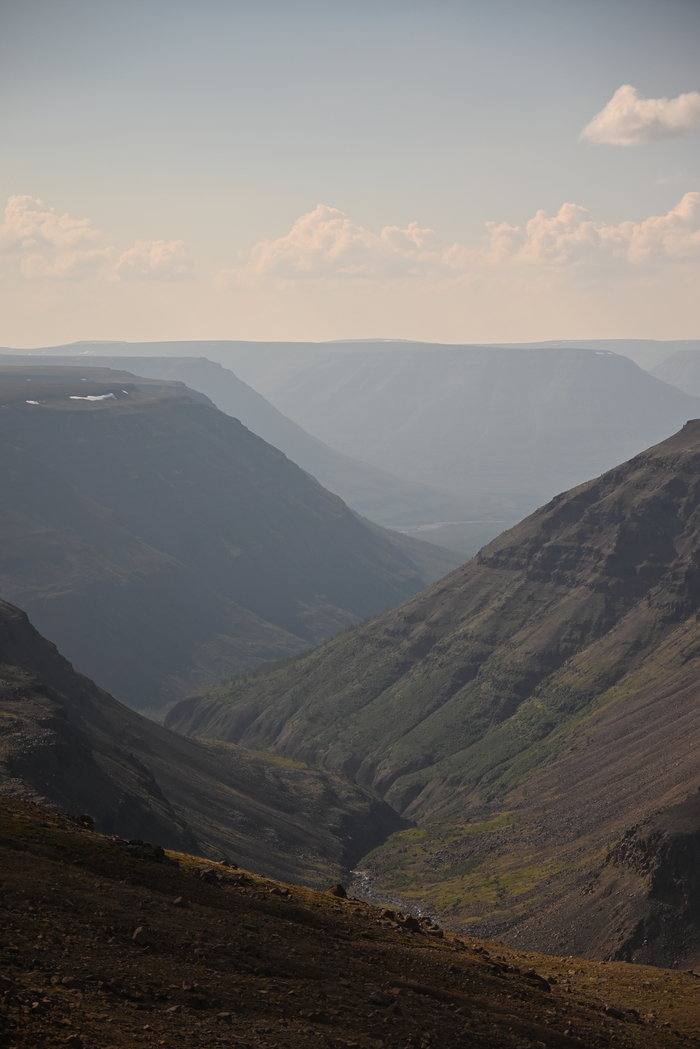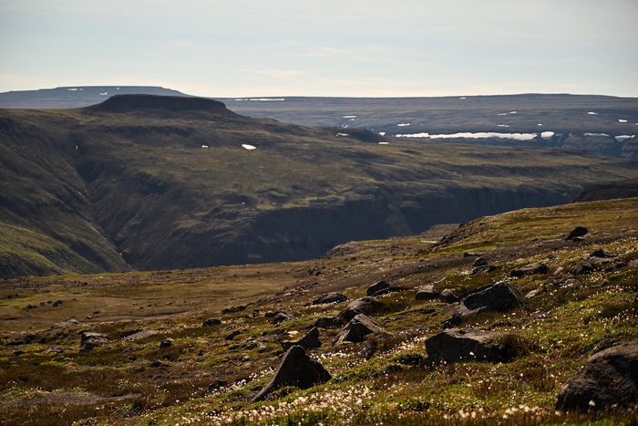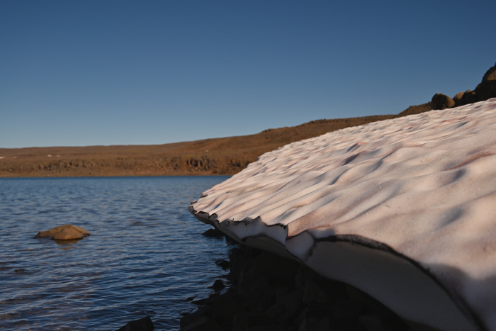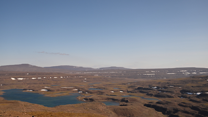 День 7: утро выгоняет из палатки солнечным жаром и духотой ещё до 7 часов. Хотя полярный день уже уходит, и небольшие горы рядом со стоянкой по началу прикрывают от солнца, большую часть времени спастись от него всё равно негде.