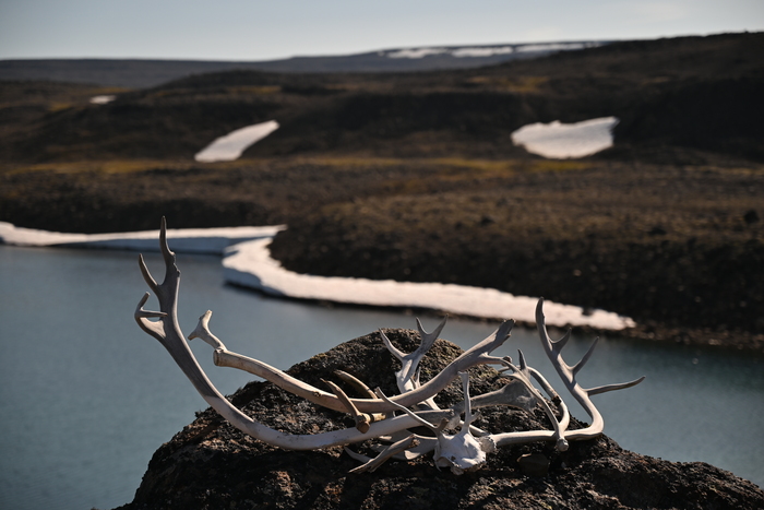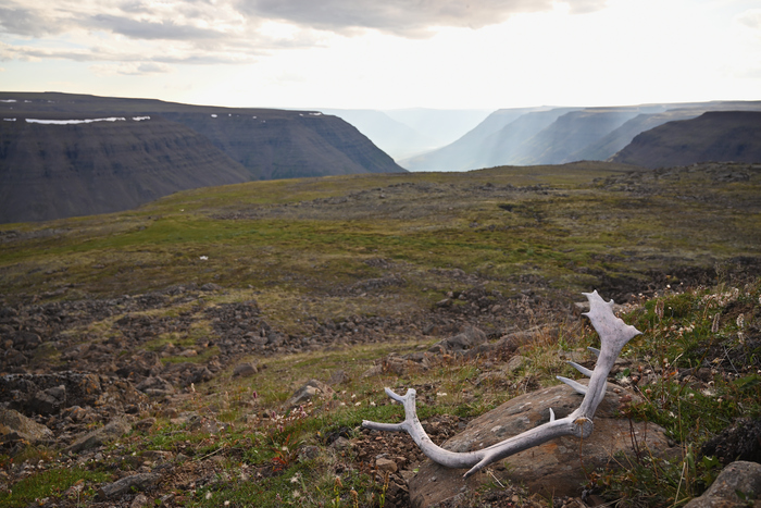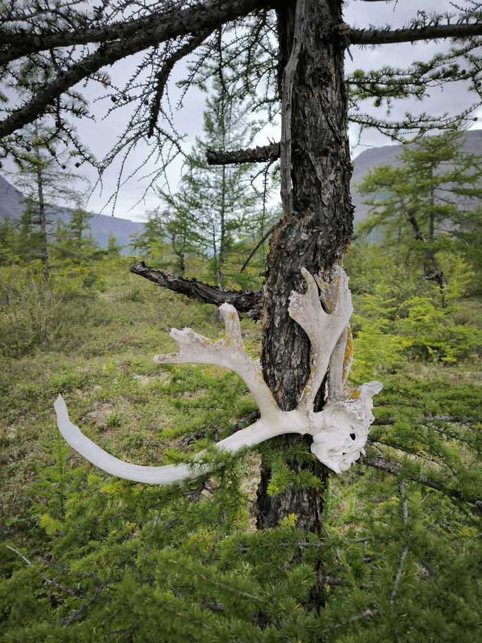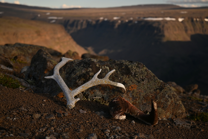 Лагерь ставим уже в обед и бегом бежим в радиалку, чтобы успеть вернуться до захода солнца. По пути встречаю много оленьих рогов и один - бараний. Желание многих в походе увидеть редких зверей и я не исключение, но пока что натыкаюсь только на тундряную куропатку.