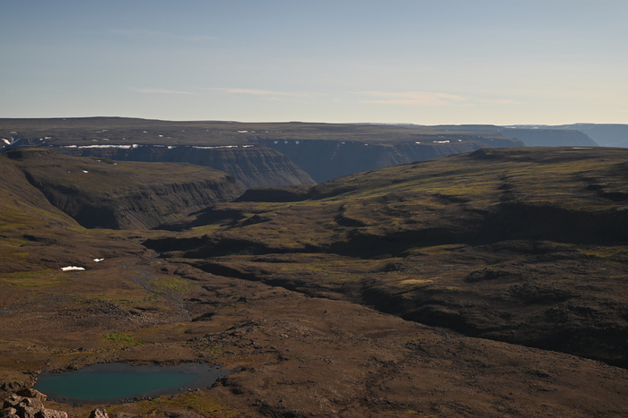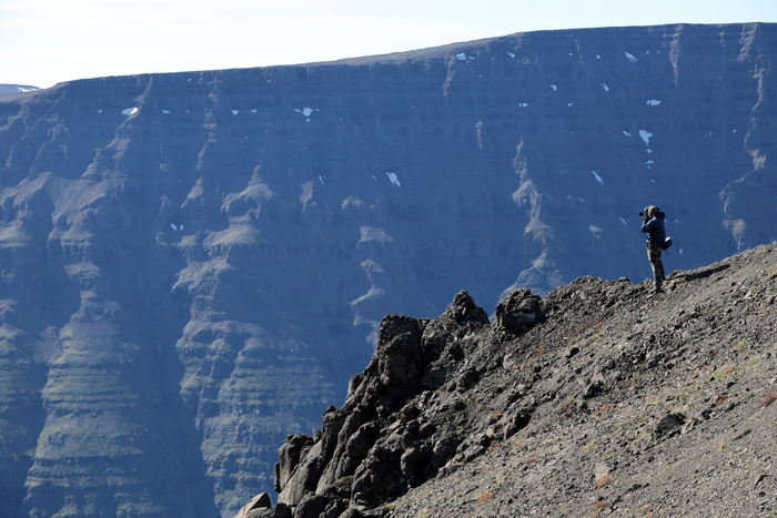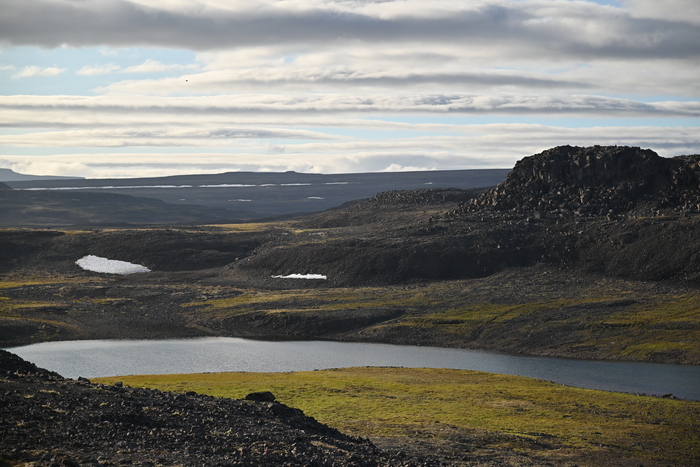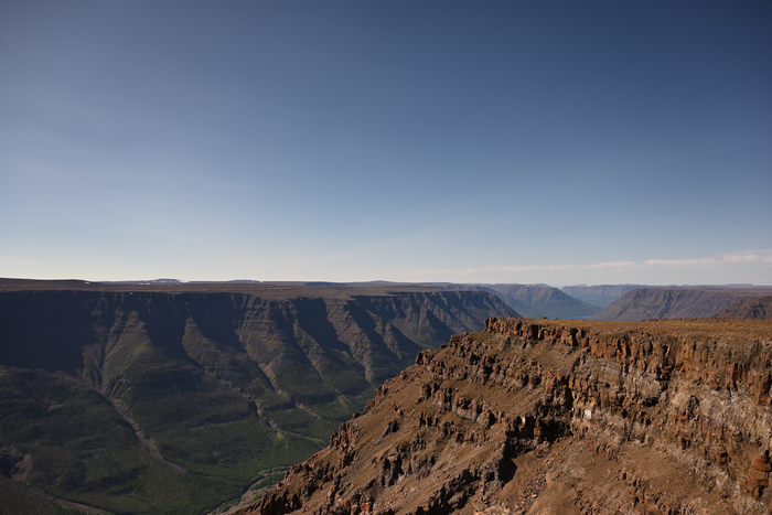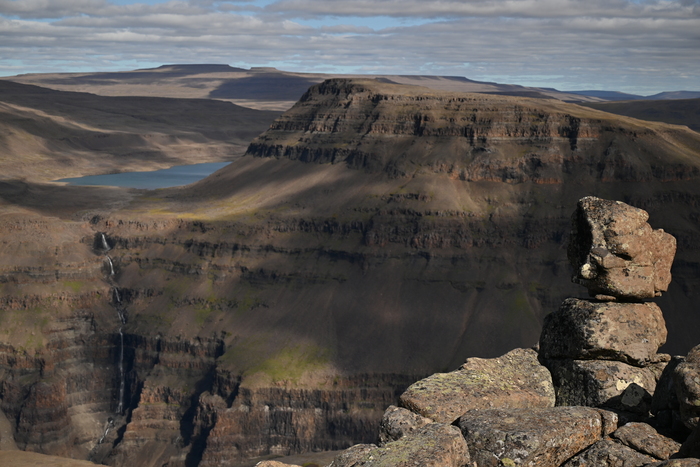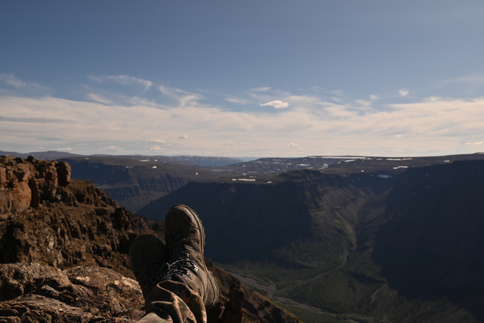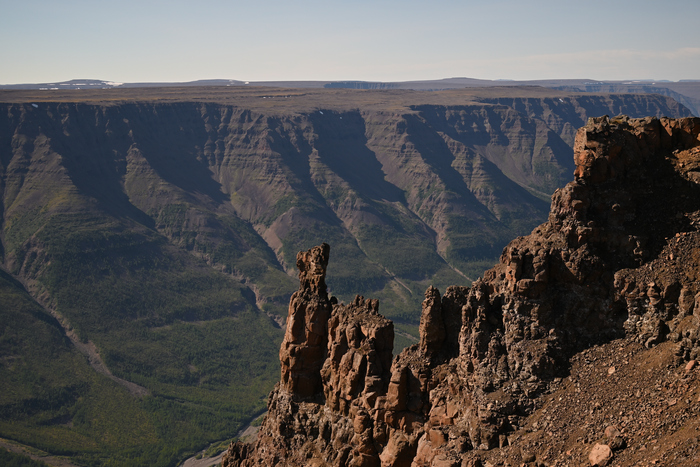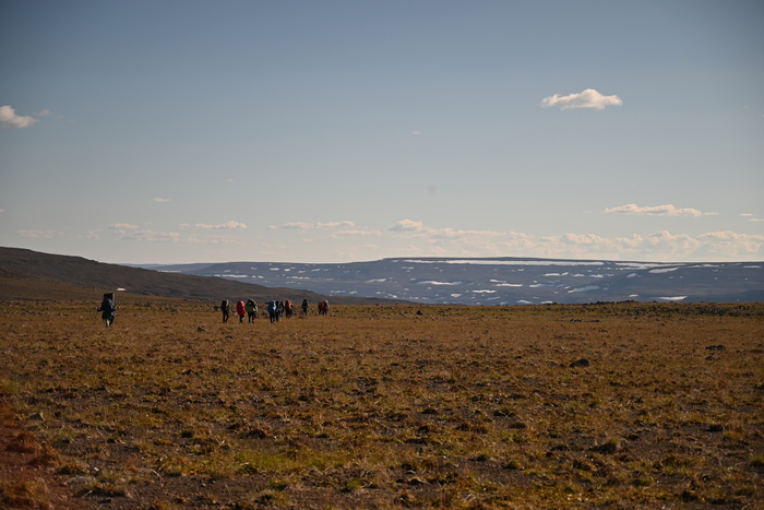 День 9: снова ясное небо, уже неделя на Путорана без единой тучи. Появляется ветер и дарит прохладу, съеденные пакеты с едой облегчают рюкзаки, и группа проходит большое расстояние по каменным пустошам плато. Для меня неделя в походе это самый приятный период: организм адаптируется, мозг расслабляется. Есть время подумать обо всём на свете пока ты идёшь и идёшь...