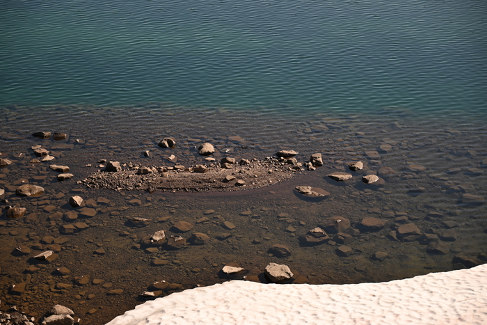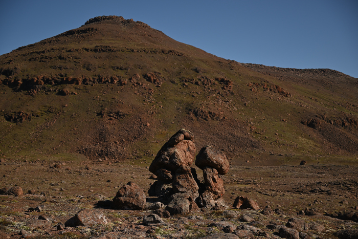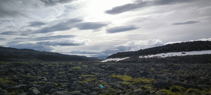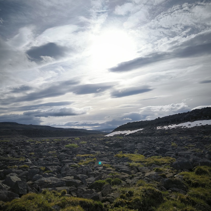 Да, перепады высоты встречаются, но основную сложность составляют большие валуны под ногами - некоторые лежат неустойчиво и можно оступиться и получить травму. Местами вместо валунов мелкое каменное крошево или мох, в нём застоявшаяся вода и нога начинает плавно уходить в грунт под весом тела и рюкзака. Но нашей группе везёт - сухая погода держится уже неделю и воды в земле не так много. У прошлой группы вообще выпадал снег и эту часть маршрута они шли в ОЗК.