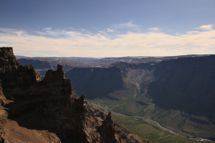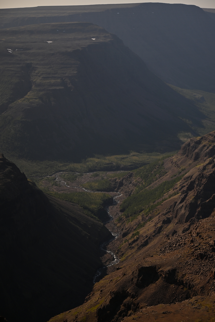 По поводу организации: спутниковая связь на маршруте позволяла узнавать прогноз погоды у координатора группы, по ней же инструктор договаривался о дате выброски и задавал темп. Идти самостоятельно может быть довольно опасно, т.к. при дожде уровень воды внизу плато сильно поднимается и может потребоваться резко менять маршрут (по рассказам, у нас всё было штатно). Ну и подъём/спуск на плато был по сыпухе, важно знать места чтобы не навернуться. Плавных подъёмов наверх я там не видел. Мы повстречали уже перед спуском другую группу, которая как раз сама организовывала поход. Они шли не спеша, с гитарами и большую часть маршрута - по низу (по ущелью), наверх поднялись только на 1 день и в момент встречи искали где спуститься. Наш же маршрут был неделю по верхам и шли мы быстро, чтобы уложиться в срок. Это совершенно разные походы, но каждому своё.