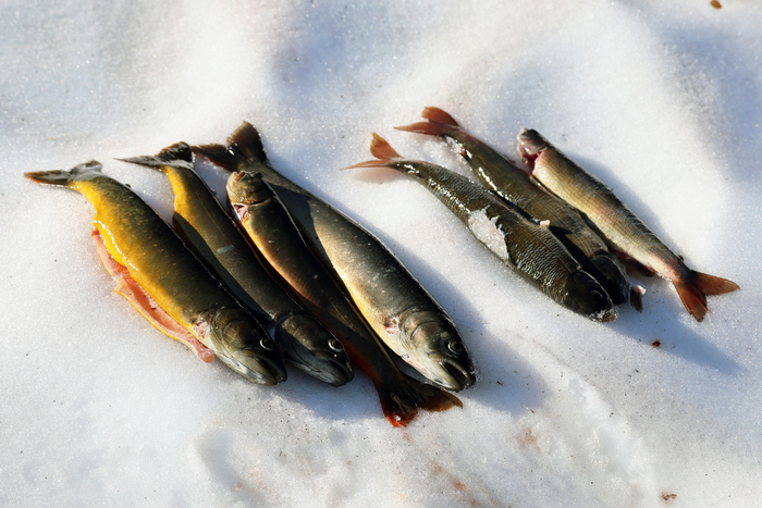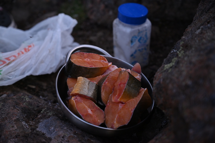 Затем я и сам поучаствовал в ловле хариуса, его потом в соевом соусе подали сырым, на манер местного блюда - сагудая. Ближе к вечеру ещё один подъём на гору рядом, фото с неё будут ниже.
