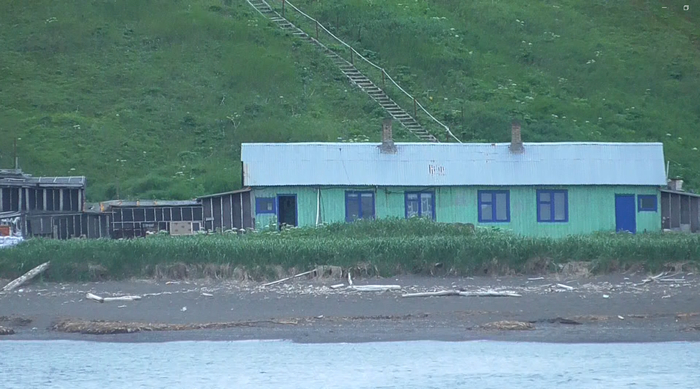 На этой полоске берега Охотского моря круглогодично живут метеорологи и сезонами егеря (или лесники, не знаю как правильно. Тут заповедник, в общем). Представляете чего тут делается в шторм?)