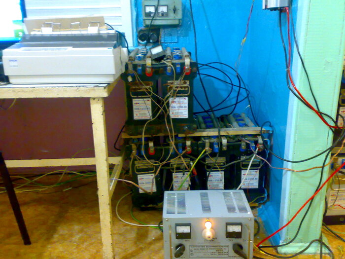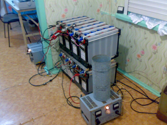 Это щелочные аккумуляторы 125 А*ч (6 шт), рядом серая коробочка - зарядник.