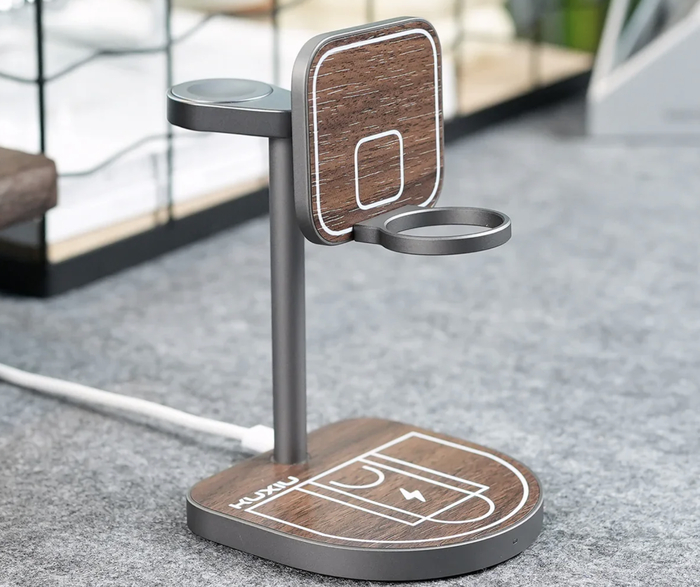 KUXIU X85Q Qi2 Магнитная подставка для беспроводного зарядного устройства для iPhone 17 16 15 14 13 Pro/Max, Apple Watch 1-9/Ultra/AirPods 4 3 2, аксессуары в виде баскетбольной корзины сочетает зарядку и эффектный дизайн.