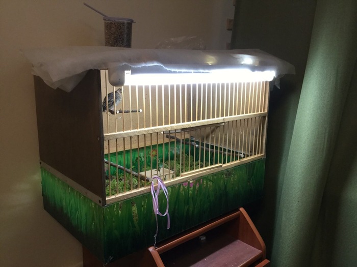 Птиц стал летуч, а не как раньше, теперь летает и ныкается от нас (когда ловим) во все щели, к моему ужасу, он присматривается ко «второму свету» в потолке.