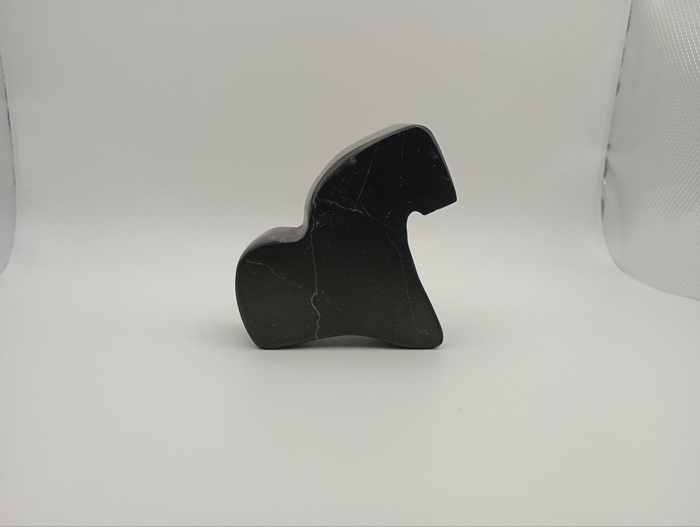 В декабре-январе каждый мастер-ремесленник делал своего коня – символ наступившего 2026 года, у меня получился такой. Этот конь сделан из черного известняка, добытого в Чойском районе Республики Алтай.