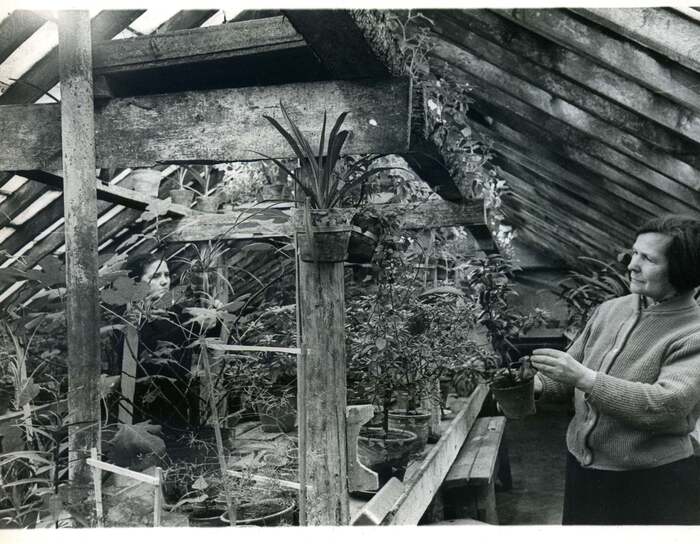 Жительница староверческой деревни Аудрини Резекненского края Я. Вобаль ухаживает за животными. Латвийская ССР, 1984 год.
