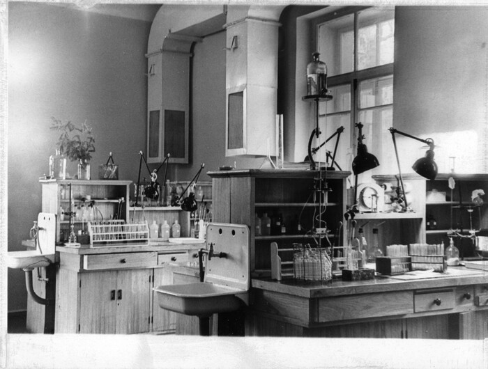 Снимок сделан в квартире расположенной в Палате мер и весов на Забалканском (ныне Московском) пр. 19, где Д.И.Менделеев жил с 1893 г. до смерти в 1907 г.