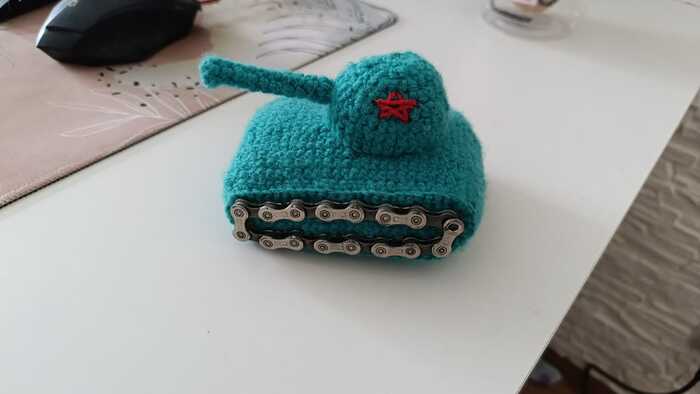 Вспомнил, как на 9е мая надо было сделать поделку. Моя умница жена по невнятным рекомендациям в интернетах связала Танк. Не то что бы натуральный, но очень и очень симпатичный. Ламповый такой, вязаный танк. Я, приняв самое деятельное участие в проекте, пожертвовал часть велосипедной цепи из которой сделали гусеницы. Ребенок понес танк в школу, а мы фото танка понесли в дружеские чаты. Признание всегда приятно, тем более и правда было красивчато. Успех был резкий и оглушительный. Подобные задания задавали во всех школах. Люди просто брали фото нашего танка и скидывали их своим классным руководителям, выдавая за свое творчество,. Классическое: "Делали всю ночь, а ребенок забыл, но вот фоточка." Танк облетел множество классов и все школы города. Гдето были скандалы, потому что его скидывали одному и тому же учителю по несколько раз. Возможно, даже вышел на всероссийский уровень, не знаю. За танк ребенку поставили заслуженную родителями пятерку. Сему мораль, делитесь фото поделок после праздников. Фото танка прикреплю вечером, дома стоит, красавец.