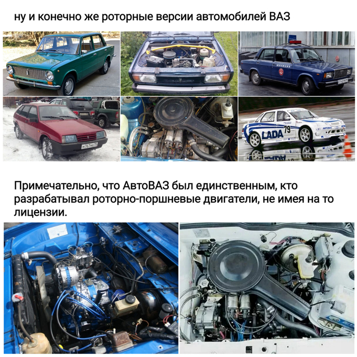 Про последний буквально пара слов. На ВАЗе роторные моторы ставили на машины предназначенные для Милиции, последними роторными Ладами, если мне не изменяет память, были модели Самара-2 (пятнашки там, четырки).