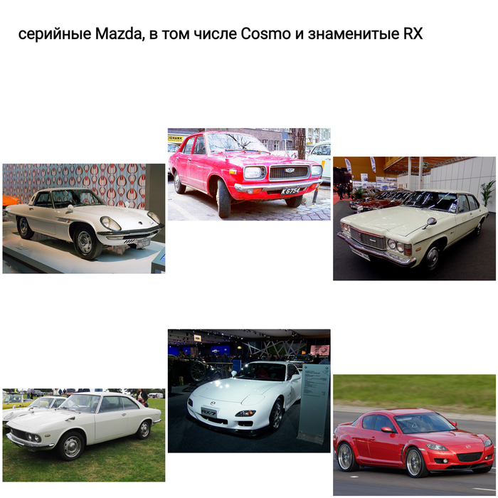 Однако мотору не дали погибнуть японцы, и в 1967 году дебютировала Mazda Cosmo, литровый мотор которой выдавал те-же 110 сил, однако вскоре мощность увеличили до 130 сил.