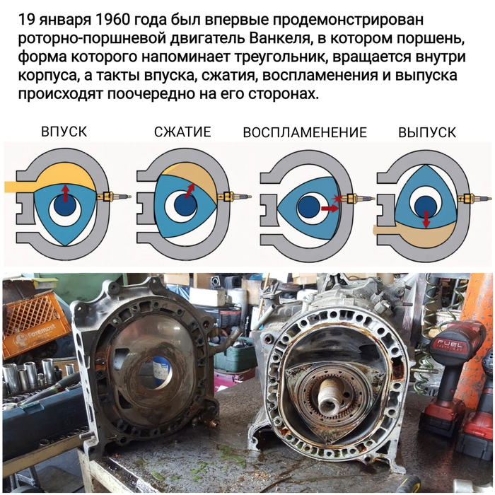 Всем здрасьте. По многочисленным просьбам в комментах пишу пост про двигатель, стоящий особняком в мире ДВС, так как получил достаточно большое распространение в серийных автомобилях и иногда в мотоциклах, в отличии от других моторов оригинальных конструкций, обходящихся без кривошипно-шатунного механизма.