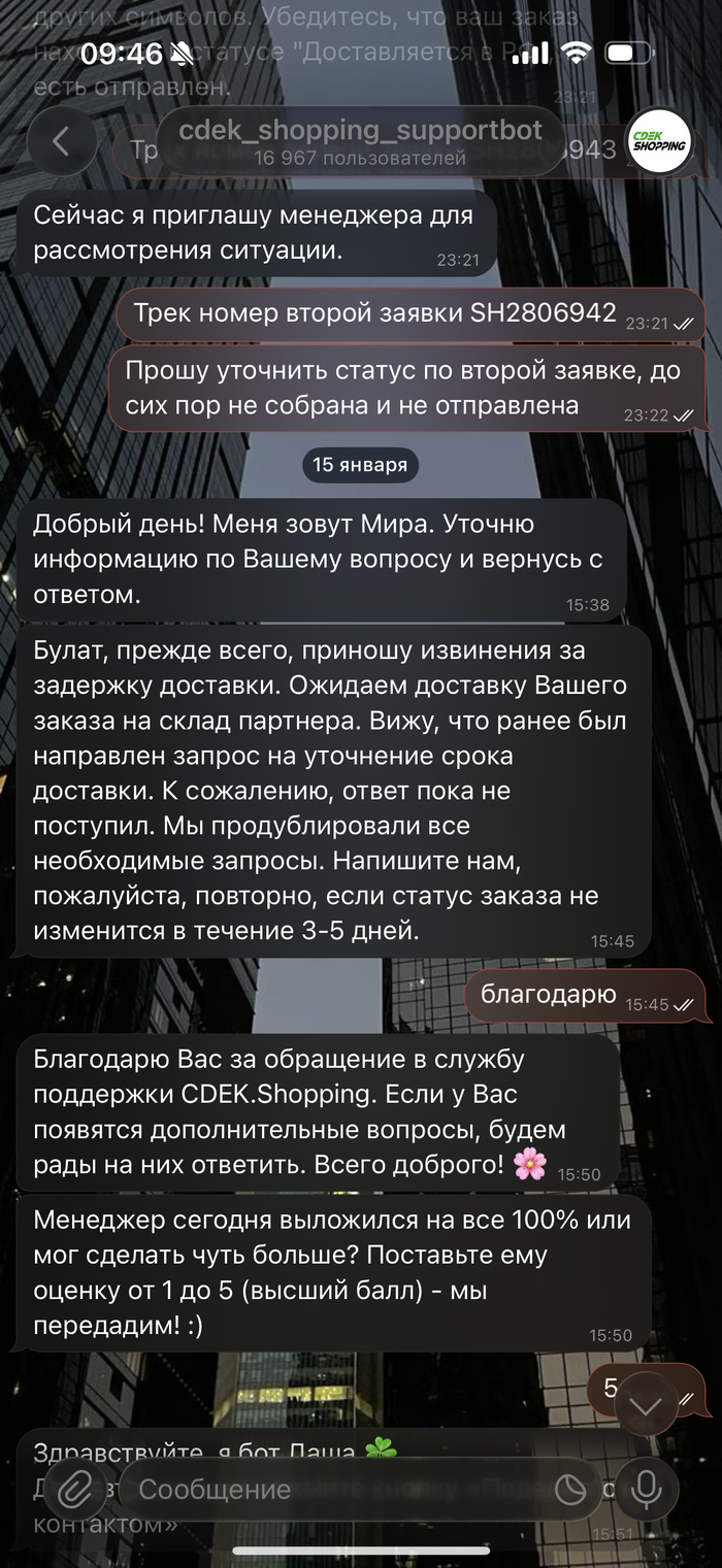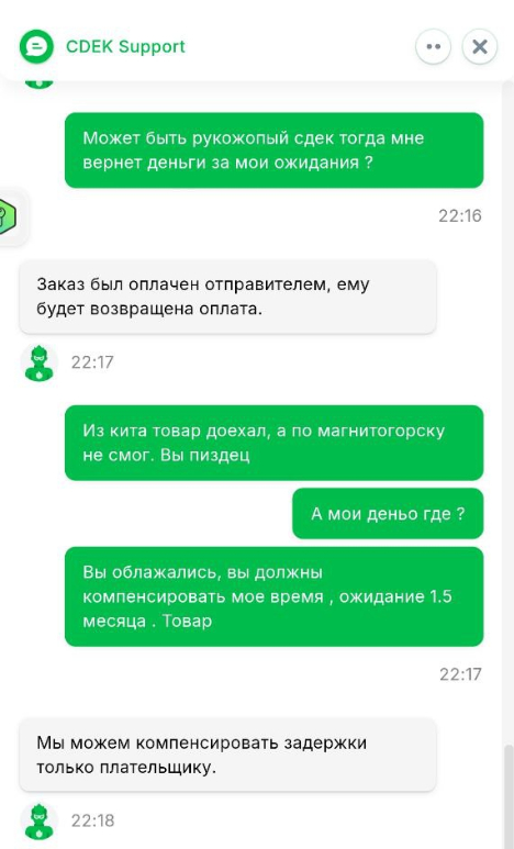 Если что то посоветуете, тоже буду признателен. Обращения в чат поддержки и по телефону СДЕК результатов не принесли.