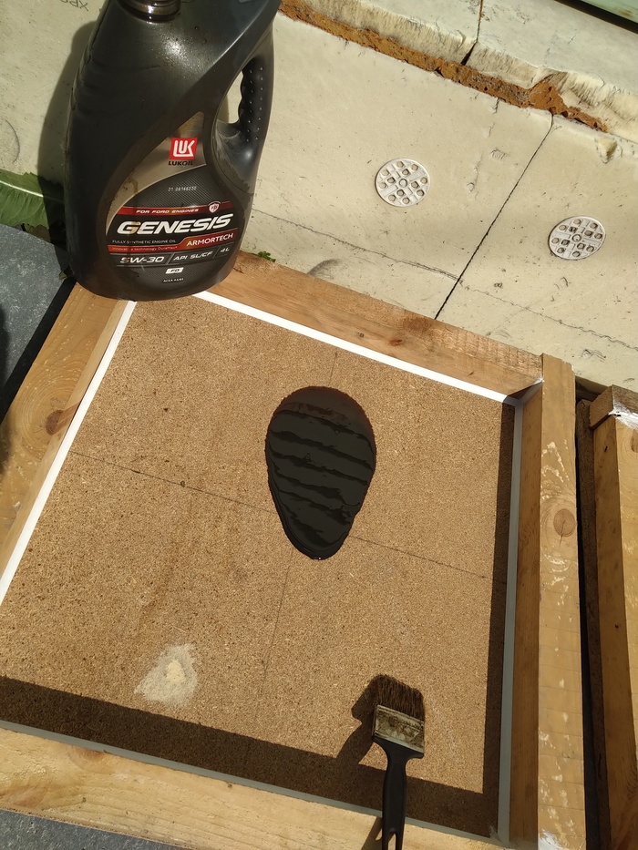 Следом прикупил пластиковую армирующую сетку, а отработки у меня в гараже много накопилось (что бы бетон не прилипал к формам).