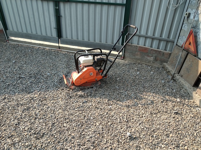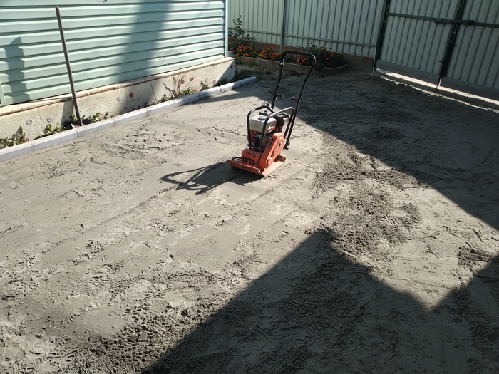 Дальше халявим пару часов, гуляя за этой шайтан машиной (попутно трамбуя щебень). Предварительно заказав машину песка.