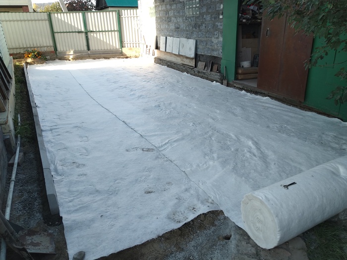 Теперь расстилаем геотекстиль (купил самый плотный из тех что нашел ).