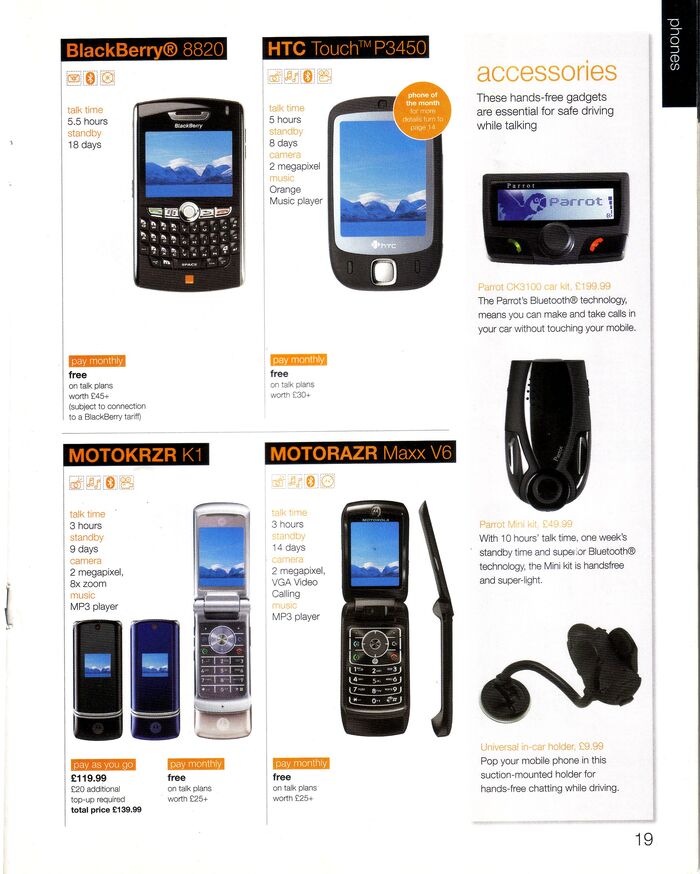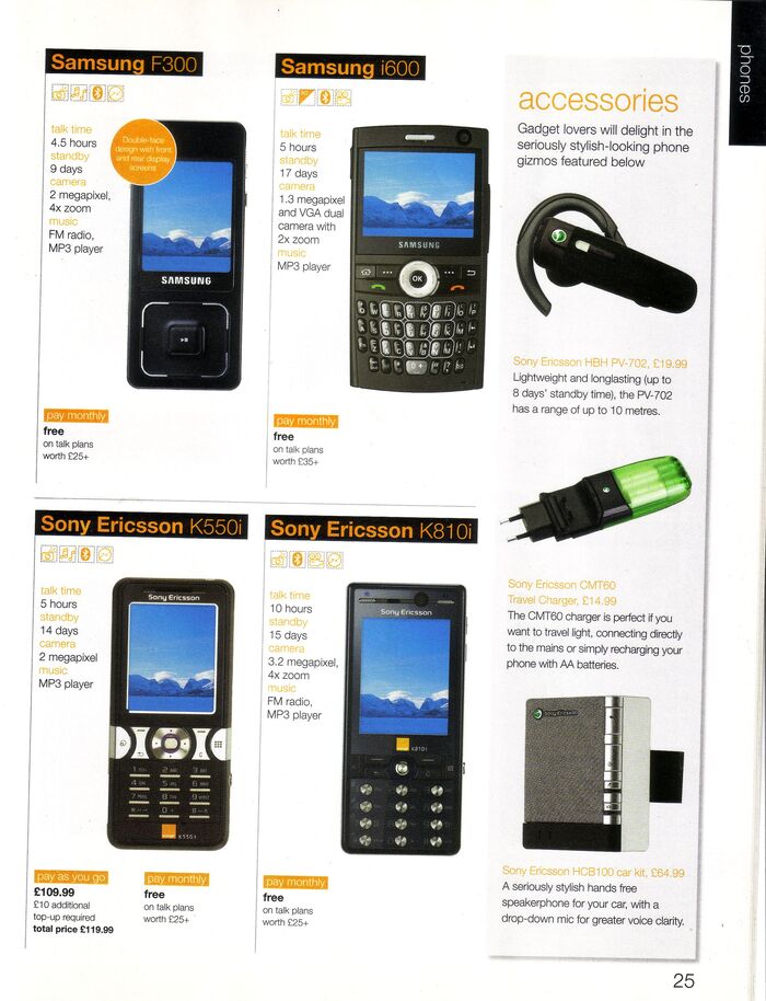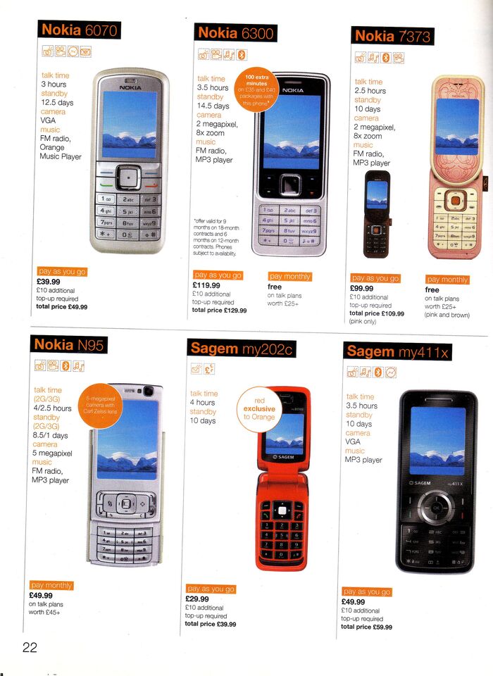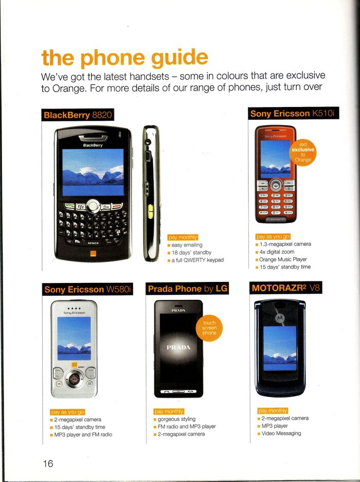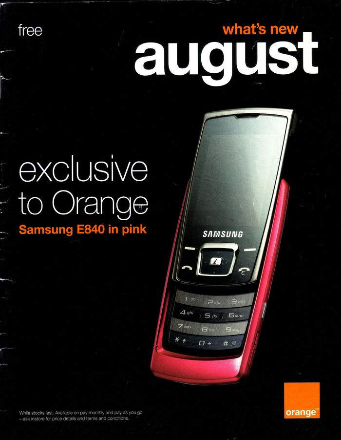 В прошлый раз мы с вами уже отправлялись по волнам памяти в июнь 2007 года и листали каталог британского мобильного оператора o2. Но у меня нашёлся ещё один каталог из 2007 года, и тоже из Англии, от ныне не существующего оператора Orange UK. Берите блейзер, надевайте розовые шмотки со стразами, ну или что-нибудь готическое, вставляйте в уши плеер с Tokio Hotel - мы возвращаемся назад ...увы, не в будущее, а в светлое прошлое.