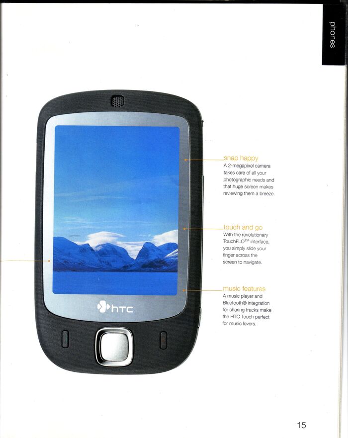 Героем каталога был легендарный HTC Touch. Вы и представить себе не можете, как я хотел его купить тогда. Увы, это был тот случай, когда дело было не в деньгах - он был "залочен" под операторов и шёл с годовым контрактом, который мне в силу отсутствия резидентства,никто бы не оформил. Так и осталось это мечтой.