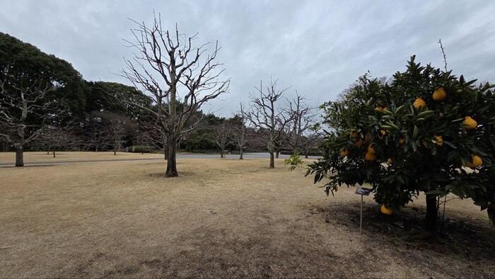 Здесь пруды, деревья, даже цитрусовые деревья со спелыми плодами. Которые, кстати, никто не трогает.