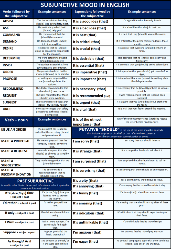 Что касается английского, то такое понятие, как сослагательное наклонение относится учебниками к разряду сложных грамматических явлений и потому изучают его обычно под занавес, будь то школа или специальные курсы. Более того, лишнюю сумятицу в понимание учеником этого явления вносит взаимозаменяемость терминов: в одном абзаце говорится то об условном предложении, то о сослагательном наклонении. А что до таблиц, призванных облегчить понимание, то английское сослагательное наклонение может в нём изображаться так:
