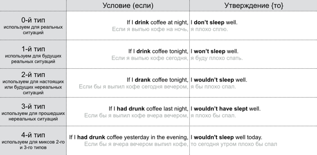 Тема эта достаточно сложная и запутанная, вызывает много вопросов, но всё же - нужная и без неё сложно обойтись хотя бы потому, что условные предложения мы используем часто.