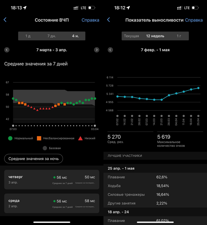 По статистике Garmin хорошо видно, как в начале марта ухудшилось моё состояние: значительно снизился показатель ВЧП, я перестал тренироваться, и, как следствие, упал уровень выносливости.