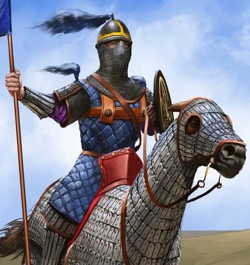 На ней изображён воин, который, уже победив одного противника, вонзает свой клинок в открытую шею второго противника с щитом, одновременно хватая его за гребень на шлеме.
