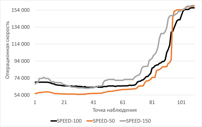 Утилизация диска максимальна при значении 50 (95,1%), при 100 и 150 стабилизируется на уровне 92,7%