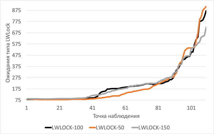 Наилучшие показатели задержек чтения достигаются при максимальном значении 150