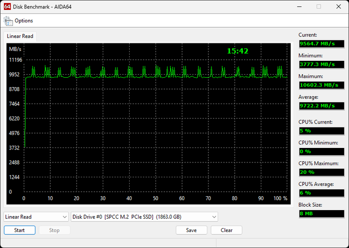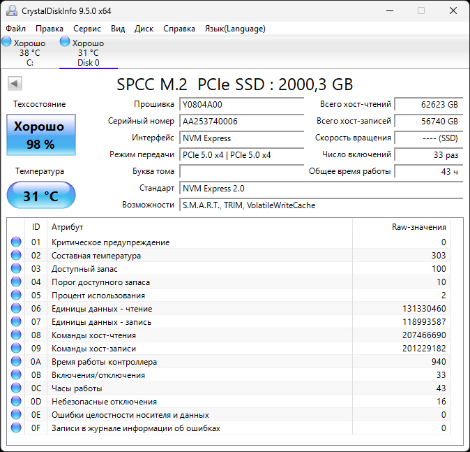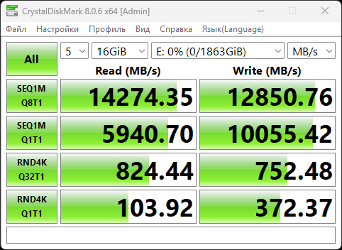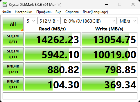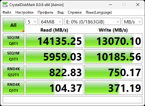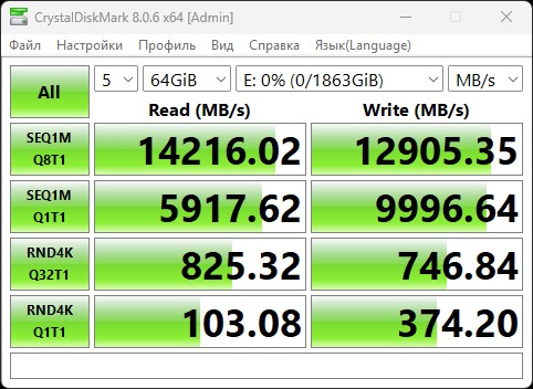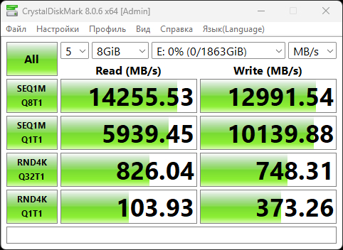 Производительность диска: Наивысшая пропускная способность (137.5 MB/s) и наименьшие задержки чтения (9.8 мс).