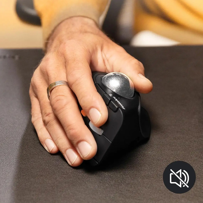 Трекбол управляется большим пальцем и имеет съемную конструкцию для легкой очистки, что позволяет точно позиционировать курсор без движения всей руки — особенно удобно при работе с графикой или таблицами. Подключение по Bluetooth 5.0 или через USB-приемник 2.4 ГГц, переключение между тремя устройствами одной кнопкой.