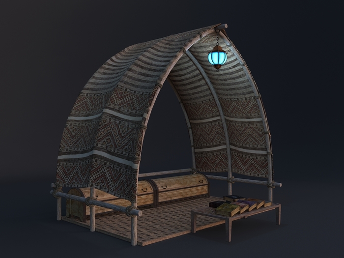 Думаю это палатка эшлендеров, нашила туда подушек и одеял. С одеялами возникли сложности, свернуть его ровненько в Марвеле средствами программы никак, все мануалы которые я находила предполагали ручное сворачивание с помощью булавок и швов, не очень результат получается. Идею мне подсказали, я сделала палку в максе, перенесла в марвел, прикрепила одеяло парочкой булавок к ней и тупо накрутила одеяло на палку. Получилось вроде норм. Может добавлю какие то бусы, но мне кажется будет перебор. Или нет. Посмотрим в общем