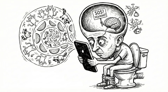Центр удовольствия у нас теперь главный. Раньше он был гурманом. Ему подавай решенную задачу, удачную шутку, флирт с женщиной или, на худой конец, хорошую книгу. Теперь он превратился в опустившегося алкоголика, который глушит технический спирт. «Вкусненько!» — орет он, получая очередной рилс про кота, который боится огурца. «Это суррогат, — вяло возражаю я. — От этого тупеют». «Зато быстро! — парирует он. — Не надо напрягаться. Не надо думать. Свайп — и кайф».