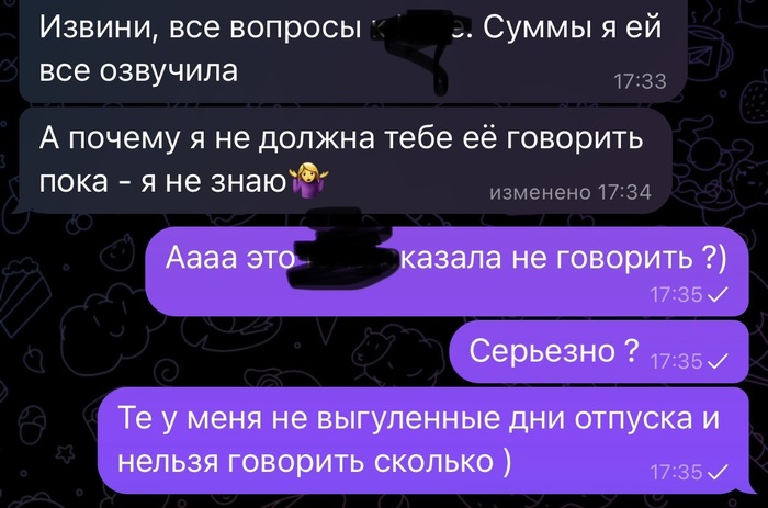 Тут первый звоночек, я понимаю, что они за моей спиной заранее обговорили все, и менеджер мне даже ничего не сказала. К слову у нас были очень открытые , дружеские отношения между всеми, много делились личным. Я сама приняла к себе в отдел этого менеджера 3,5 года назад, вырастила считай с 0 из нее спеца. Решала ее разные вопросы, вплоть до помощи при аборте (искала врачей, которые ее проконсультируют, помогут) , когда она залетела от парня наркомана.