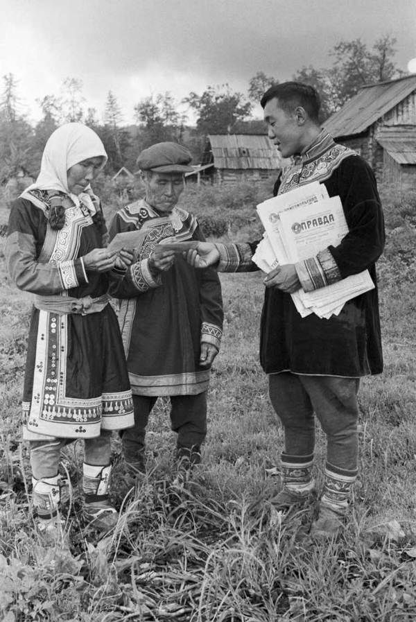 Моя колоризация "Почтальон принес почту жителям села Гвасюги". 20 августа 1947⁠⁠