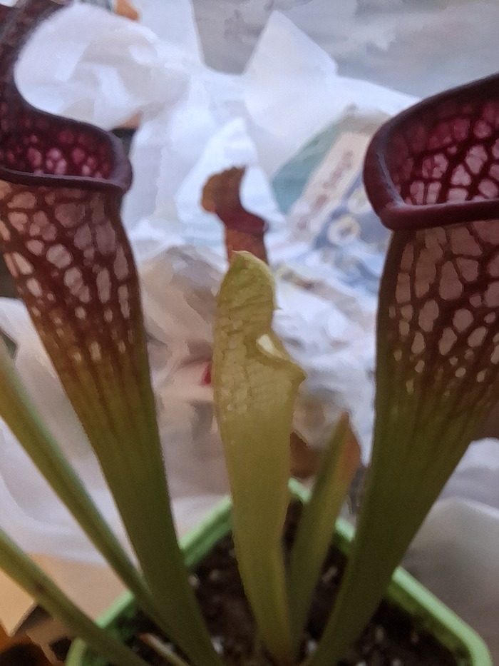 А ещё есть непентес хукериана(n. Rafflesiana X ampullaria),конкретно он создан не рукой человека а силой природы,к слову он достаточно устойчив в неволе и сверх условий не требует