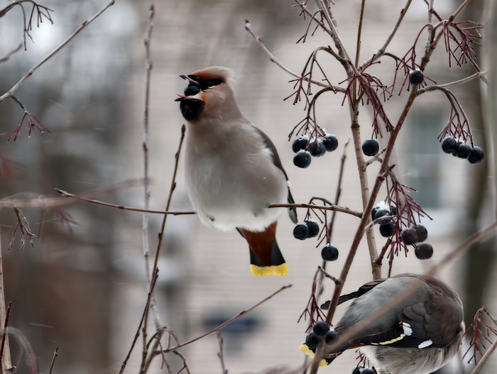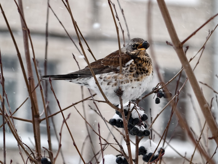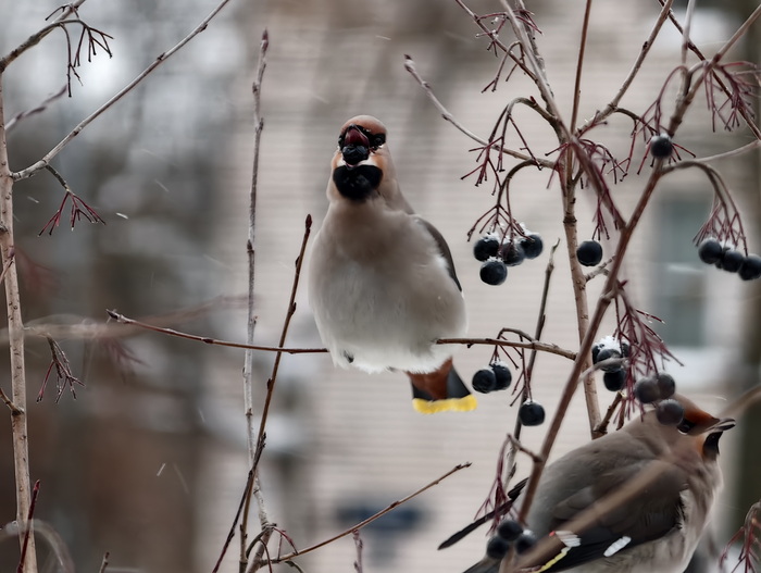 Если вдруг вы не видели как птицы зимой едят ягоды