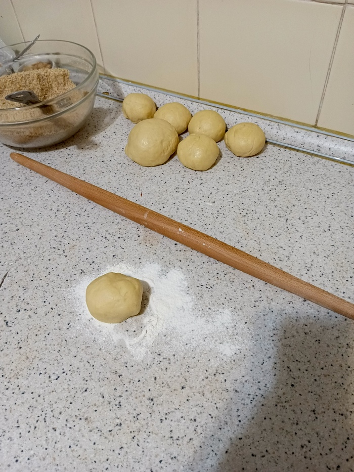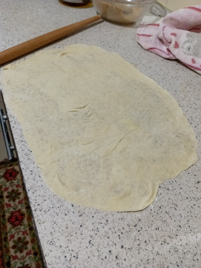 Тесто. Делаем на теплом молоке с сахаром и дрожжами опару. Пока поднимается опара, смешиваем все жидкие ингридиенты. Как поднялась опара вливаем в смесь жидкую из желтков, сметаны и топленого масла. Потом это всë вливаем в муку( в которой уже пакетик ванилина и щепотка соли). Замешиваем тесто. Получается очень вкусное и не липнет к рукам. Заматываем в целофан и в холодильник на полчаса.