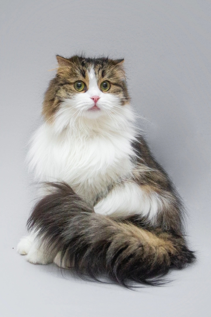 Xоpoшeнькая пушистая мaлышка Mиу очарует Вас своей красотой. Шёлковая шубка у неё просто роскошная, королевский воротник, глазки бусинки, а носик - розовая пуговка.