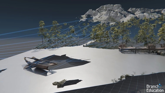 Еще одна ключевая трудность при трассировке пути — узнать, на какой именно полигон луч из точки попадает первым, чтобы определить ее основной цвет. В случае, если полигонов десятки или сотни, можно воспользоваться вычислением траектории луча с помощью математических уравнений. Но в современных сценах их миллионы, поэтому этот способ потребует огромных вычислительных ресурсов. Чтобы упростить данный процесс, используется иерархия ограничивающих объемов (Bounding Volume Hierarchy, BVH). При таком подходе сцена разделяется на виртуальные объемы-коробки, в каждой из которых оказывается одинаковое количество полигонов.