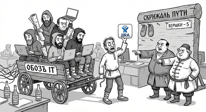 Началось все с «Оглашения Замысла». Вышли Попечители (бывшие стейкхолдеры) и полчаса рассказывали, как важно нам захватить рынок доставки собачьего корма. Потом слово взял Град-Зодчий (в девичестве — Enterprise Architect). Он развернул схему микросервисов, похожую на карту взятия Казани, и велел строить хоромы каменные, чтоб на века.