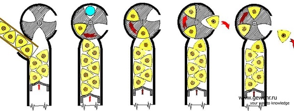 Суть же заключается в следующем. Коробчатый магазин на 45 или 50 безгильзовых патронов вставляется сверху, вдоль ствола. Боеприпасы из него подаются вертикально вниз и попадают в ключевой элемент конструкции — вращающийся цилиндр. Он выполняет роль каморы-патронника. Цилиндр поворачивается на 90 градусов, патрон оказывается на одной линии со стволом. Срабатывает ударник, происходит выстрел.