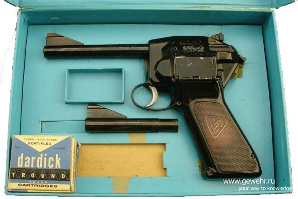 В 1950-х годах в США экспериментировали с альтернативными методами боепитания пулеметов. Кажется, тогда было подмечено, что будь у патрона треугольная гильза, он занимал бы меньше места в магазине. Всерьез эту идею никто не рассматривал, пока американец Давид Дардик (David Dardick) не решил, что «треугольный» патрон идеально подойдет для оружия, сочетающего простоту конструкции револьвера с большим боезапасом пистолета.