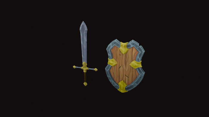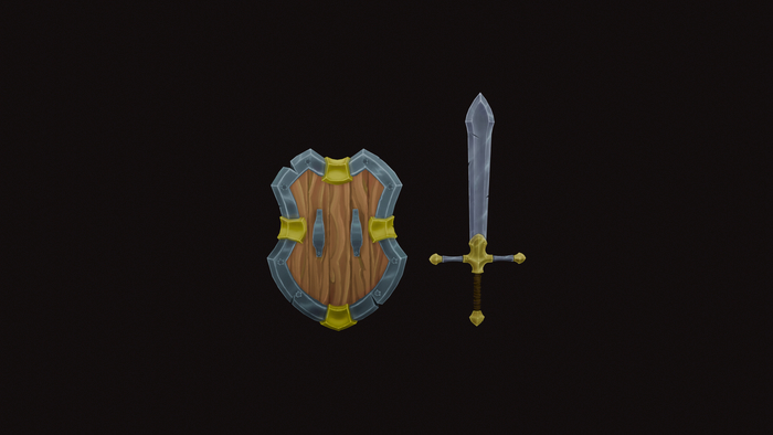 Практика стилизованных hand-painted текстур... Просто моделирование и разукрашивание через черно-белые слои. Здесь можно скачать/посмотреть в 3d вьюере: https://sketchfab.com/3d-models/shield-and-sword-53ed7ecb3b5...