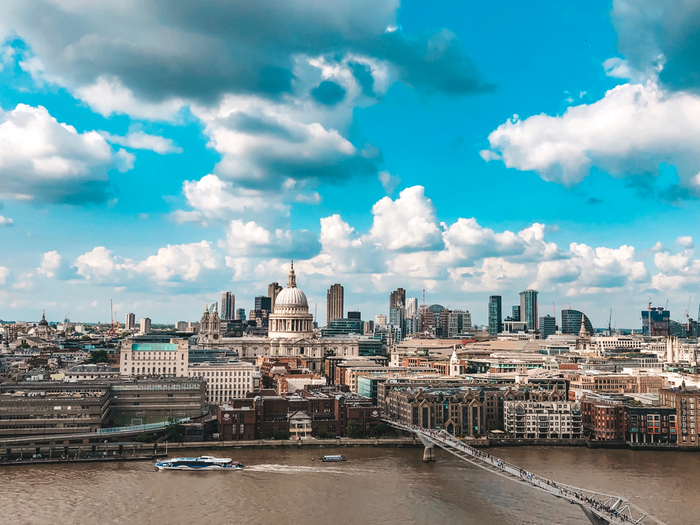 Такой вид открывается(на St. Paul’s Cathedral и Millenium Bridge) с 10 этажа музея современного искусства Tate Modern в Лондоне. В музей вы, конечно, можете сходить, но я не ручаюсь за вашу психику. А вот смотровая площадка того стоит, причём бесплатная! Лучше, чем London Eye, как мне кажется.