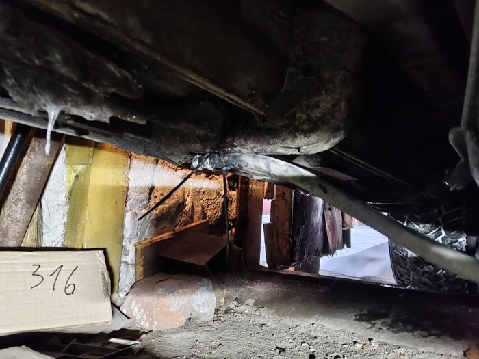 Под машиной свисает на землю какой-то шланг (!) небольшого диаметра... типа обратки с бака. Свисает где-то в центре машины. Дотягиваюсь до его хвоста: шланг вполне обычный, "резиновый" ,с хомутами, не порван, видимо слетел с патрубка. С него ничё не капает, нет ни давления ни вакуума... просто блин шланг, пустой. Он вообще мой? Или с троллейбуса залетел? (мне случалось намотать проволоку на кардан однажды).