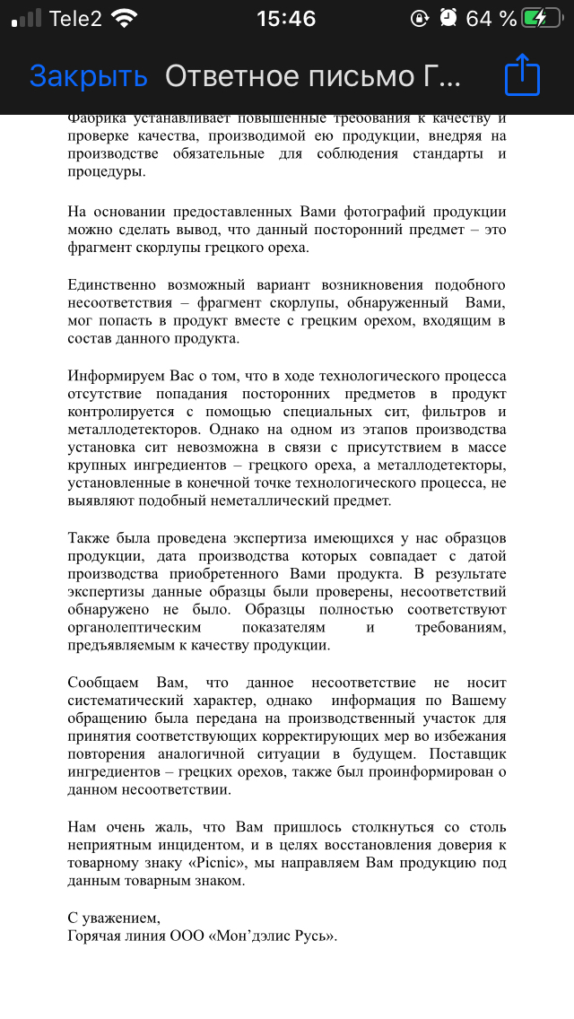 Эта история началась с того, что я купила пару батончиков Picnikc. И придя домой обнаружила, что один батончик бракованный - не хватает половинки шоколадки.