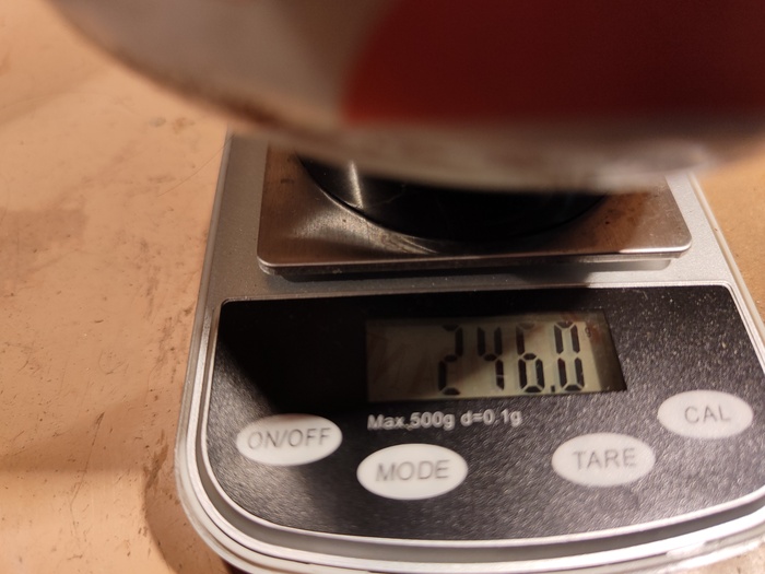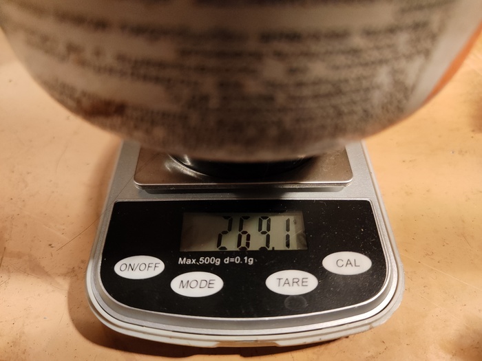 13,6 грамма. Странно, но только в полтора раза больше. Хотя я выкручивал вентиль на полную. Возможно из-за подогревающей петли, в случае родной кастрюли газ подогревается лучше и расход увеличивается.